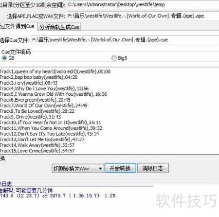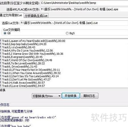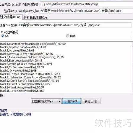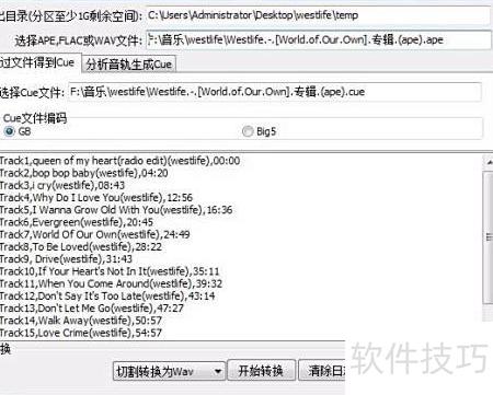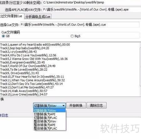 5、 根据需求选择相应格式,可将音频分割并转换为wav、flac或ape格式,也可整体转换为wav、flac或ape格式,操作灵活,满足不同使用场景下的音频处理要求。