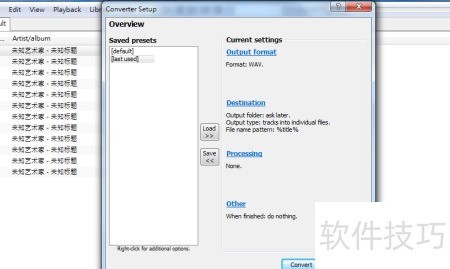 网上下载的CD镜像多为CUE加WAV格式,播放不便。可通过专用软件按CUE索引将WAV分割成独立音轨,实现单曲播放。