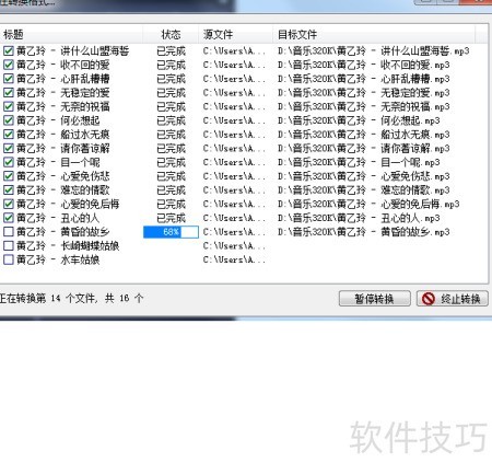 7、 稍等片刻即可完成转换,左侧仅显示名称,右侧完成后会带有.mp3后缀,此方法简单易懂,适合新手操作。