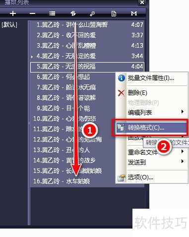 4、 歌曲名称将正常显示并可试听,随后在歌曲列表中全选歌曲,右键选择即可完成操作。