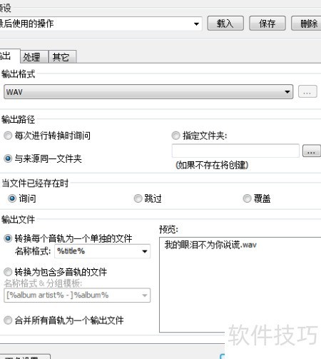 5、 选择WAV等无损格式作为输出,设定文件保存路径,确认后即可开始导出音频文件。