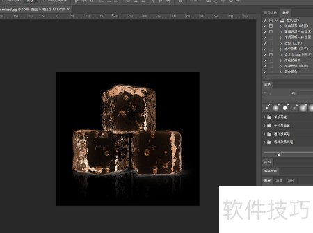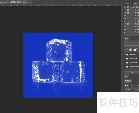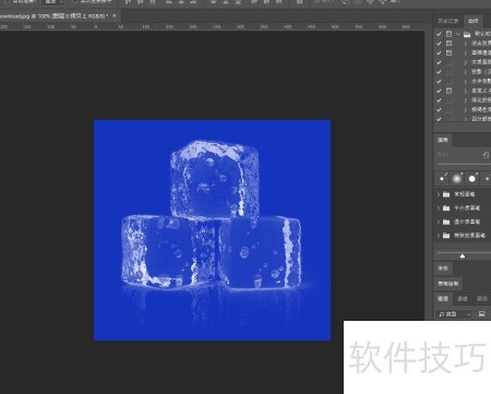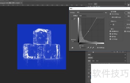 6、 若冰块图像不够清晰,可进入图像菜单,选择调整下的曲线,适当提升亮度与对比度以优化效果。