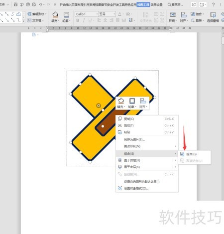 5、 按住Ctrl键选择三个图形,松开后右键点击并选择组合选项。