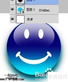1、 本教程教你运用Photoshop中的自定义形状工具、钢笔工具及图层样式,制作一个可爱的蓝色卡通笑脸图标,成品效果请见示意图。