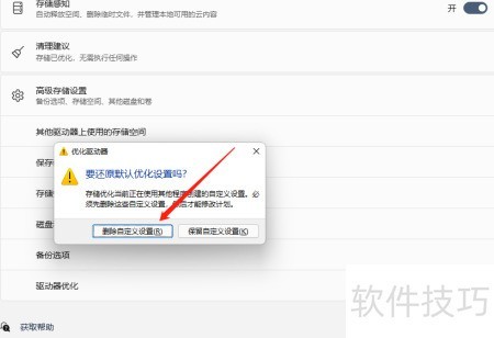 打开开始菜单,依次进入设置、系统、存储、高级存储设置,找到驱动器优化选项,选择需要优化的驱动器,点击优化按钮即可完成操作。