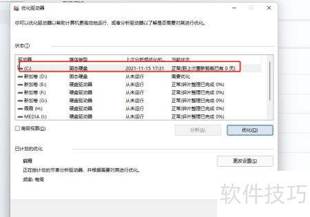 10、 选好驱动器,点击优化开始。