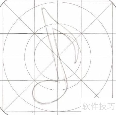 1、 在图标模板纸上绘制音乐符号的轮廓。