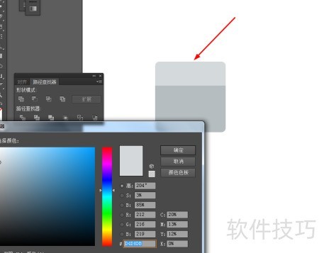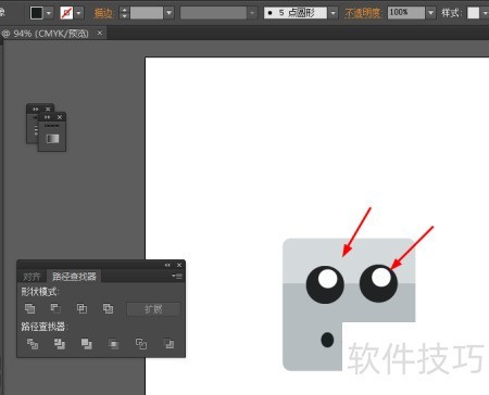 2、 选用直线工具在圆角图形内绘制一条直线,接着同时选中两者,进入窗口菜单的路径查找器,点击分割按钮,操作效果所示。