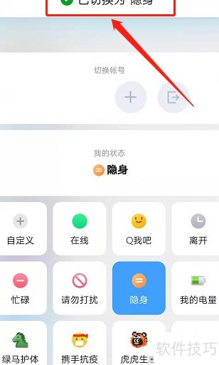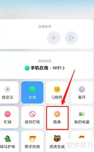 将QQ状态设为隐身即可实现隐身在线,共分三步,具体操作如下所示。