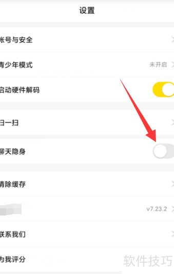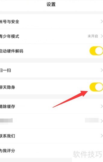 5、 开启聊天隐身功能,操作简单,详见示意图。