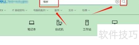 1、 访问戴尔官网,输入维修并点击搜索按钮。