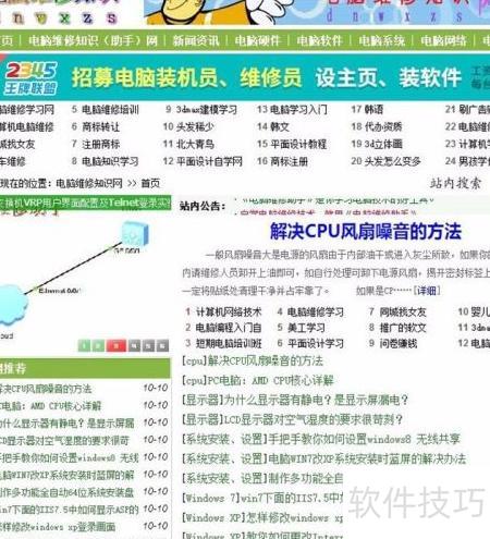3、 网站首页设有电脑维修知识、新闻资讯、硬件、软件、系统、网络、安全、配置、技巧及留言本等导航栏目。页面内容详实,涵盖多种维修方法,尽管部分内容年代较久,但依然具有参考价值,适合需要了解电脑维护与故障处理的用户浏览和学习。