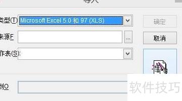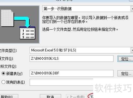 3、 选择文件类型为Microsoft Excel 5.0和97,点击源文件右侧的浏览按钮,定位到需要转换的xls文件所在目录,确认后点击下一步继续操作。