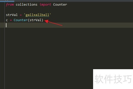 3、 在Python文件的编辑区域中,键入from collections import Counter,以导入collections模块中的Counter类,便于后续进行元素计数操作。