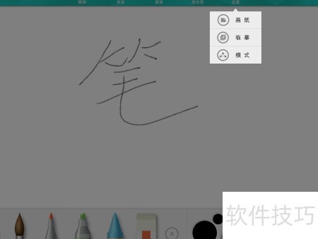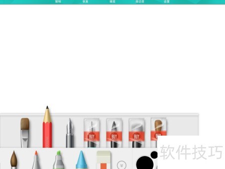 3、 根据用途挑选合适的笔和工具,右侧为调色盘,黑色颜料右上角设有小圆点,轻触可选所需渐变色。