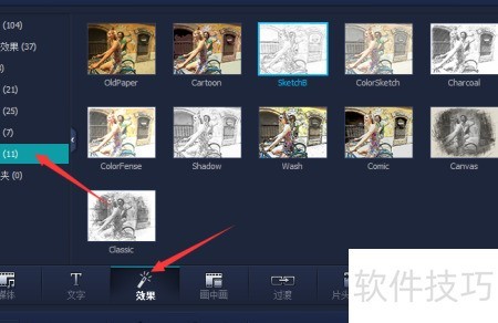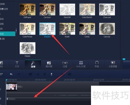4、 在绘画面板中选择喜爱的效果,例如阴影效果,进行添加应用。