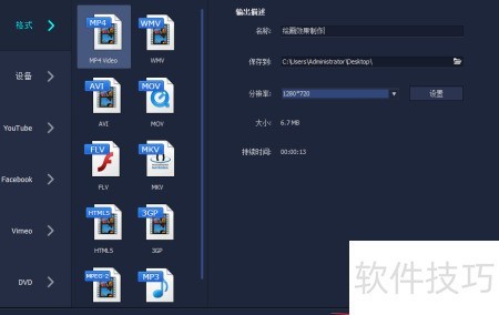 6、 选择所需导出格式及对应分辨率