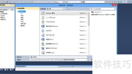 2、 在软件左上角点击文件,选择新建-项目,进入win32控制台应用程序,输入名称如简单程序,确认即可。