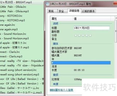 4、 右键点击歌曲,选择属性中的详细信息,即可修改歌手名和歌曲名。