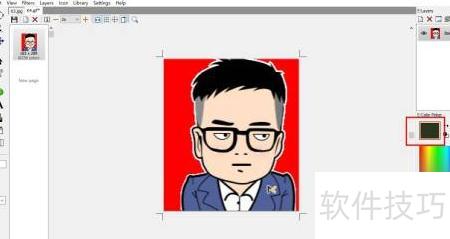 5、 从左侧工具箱中选取Bucket fill工具,点击图标上的背景颜色区域,即可用新颜色替换原有背景。