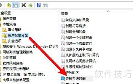 11、 打开设置窗口,选中对应用户并删除权限即可禁止修改系统时间。