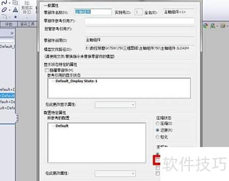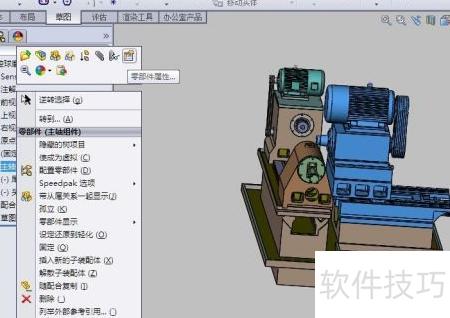 4、 需使子装配体在总装配中可移动,打开总装图,于设计树中选中该子装配体,右键点击并进入零部件属性进行设置。