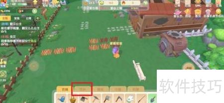 1、 返回家园,走到田边,点击农具。