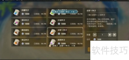7、 选择所需农作物种子,点击按钮,支付相应银两即可成功获取种子。