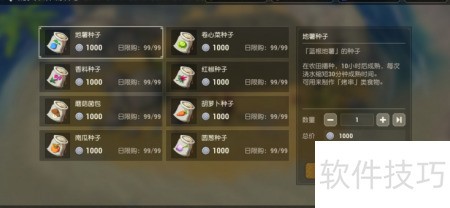 6、 将弹出购买农作物种子页面,选择所需种子即可完成操作。