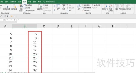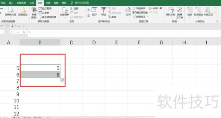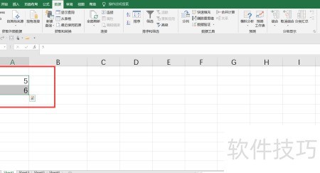 2、 在相邻的两个单元格中依次输入数字5和6,形成递增序列。