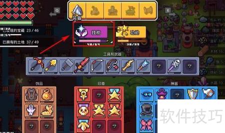 1、 打开系统菜单,选择装备中的技能选项。