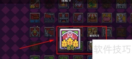 4、 点击栽培技能,再点风车并选择解锁即可。