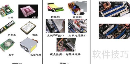 2、 了解电脑基本硬件后,按图示步骤进行组装操作。