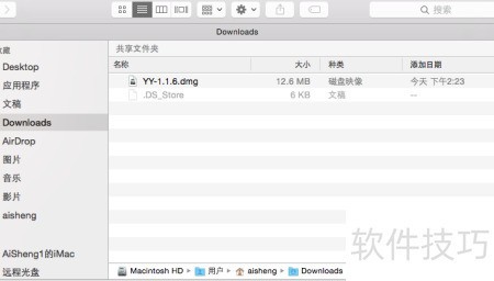 2、 请前往YY官网下载安装包,具体链接为:http://yydl.duowan.com/mac/YY/1.1.6/YY-1.1.6.dmg(版本号1.1.6),下载完成后,请在本地设备中查找该文件并进行安装操作。