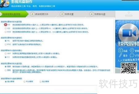 5、 此步骤中,由于需要刻录DVD,应在请选择您要制作的光盘类型处选择DVD,其余选项保持默认不变,无需修改,随后点击下一步继续操作。