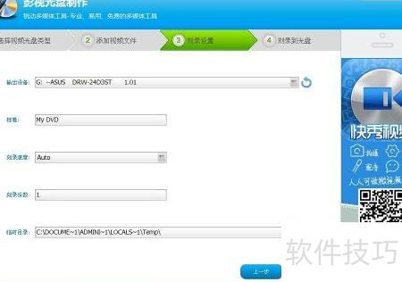 7、 刻录设置通常无需更改,保持默认即可。若需刻录多份,只需在刻录份数中调整数值,例如刻两份相同内容则设为2,随后点击下一步继续操作。
