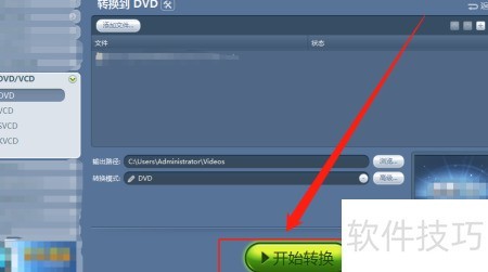 4、 打开视频转换软件,选择目标格式为DVD,点击开始转换...