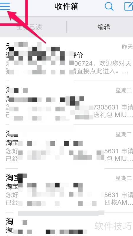 1、 打开邮箱大师,点击左上角图标。