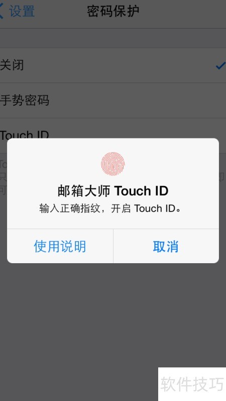 在邮箱大师中,进入设置找到安全选项,可选择设置手势密码或指纹解锁(支持苹果手机),按提示操作即可完成密码设定。