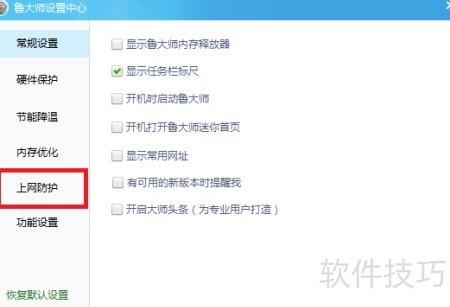 4、 点击左侧上网防护选项。