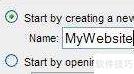 2、 点击PageWizard图标后,系统将提示Start by creating a new project。此时需创建一个新项目,并在其中添加相应的网页文件,以便构建多个独立网站。输入项目名称后,点击Click Here to Start按钮,即可进入下一步操作,开始网站的搭建流程。