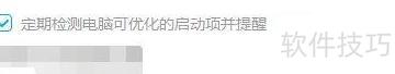6、 在栏目窗口中,选中定期检查电脑可优化的启动项并提醒选项。
