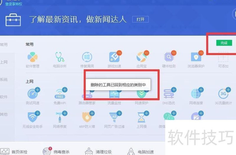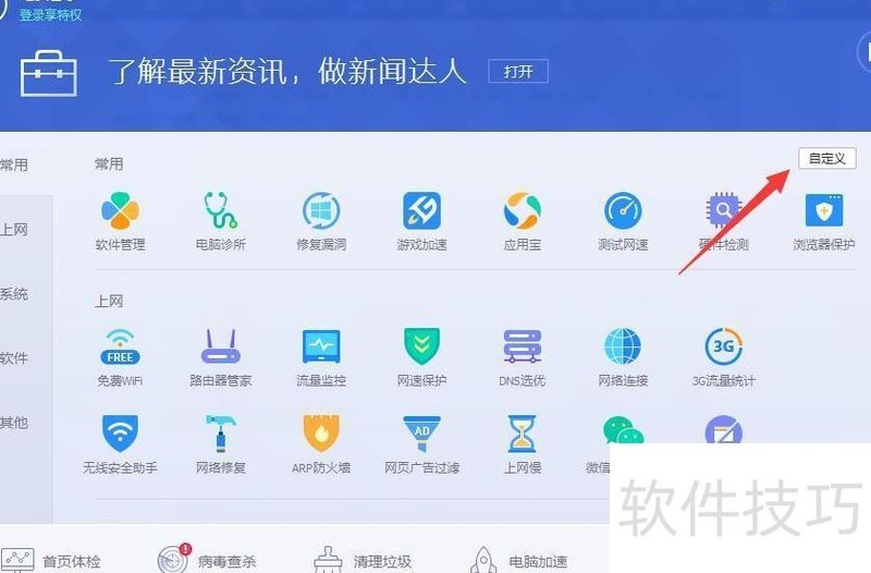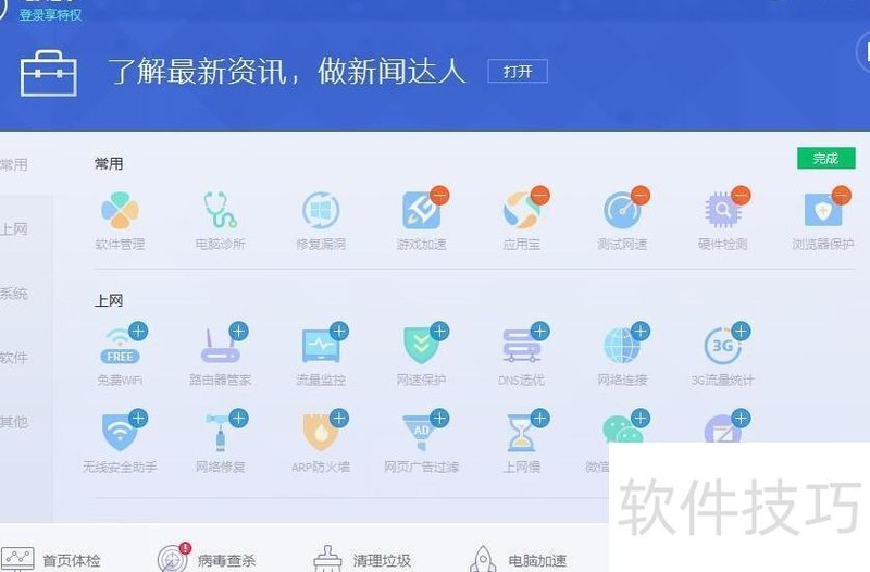 3、 这些软件通常不仅具备基础杀毒功能,还集成了漏洞修复、垃圾清理、硬件检测、软件迁移、插件管理等多种实用工具。然而,许多用户发现,安装后工具排列顺序固定,无法自定义,面对繁多功能时难以快速找到常用项。为解决这一问题,接下来将介绍一种简便的设置方法,帮助用户高效整理和定位所需工具,提升使用体验。