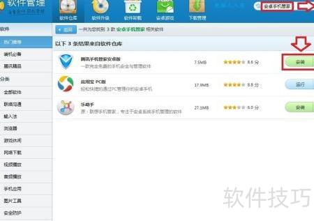 2、 若当前界面未提供所需工具,可进入软件管家搜索(如安卓手机管家),找到后点击安装即可。