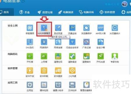 4、 当鼠标移至图标上方时,若右下角出现红色向下箭头,表示该功能尚未启用,需下载。点击左键即可将WIFI共享精灵等功能下载并安装至工具箱。这种方式让用户按需获取功能模块,避免软件过于庞大,有效减少程序体积,降低对系统资源的占用,提升运行效率与使用灵活性。