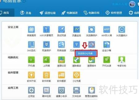 5、 例如无线安全助手可防止蹭网,若频繁使用,可将图标发送至桌面:右键点击图标,选择发送到小Q书桌,便于快速访问,操作更便捷。
