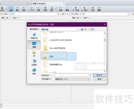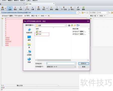 3、 点击左侧文件夹,选择需对比的文件1.txt