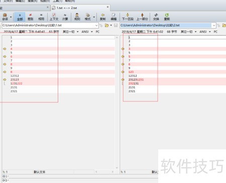 5、 该软件能自动识别并标记出代码的差异部分,在进行代码比对时具有较高的实用价值。