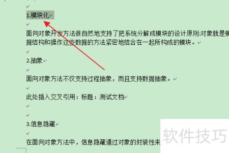 5、 在文档编辑区域中,选中要对比格式的第一段文字。