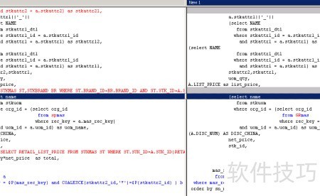 1、 先将两段SQL代码分别复制到两个SQL编辑窗口,例如第一段放入new1窗口,第二段放入new2窗口。